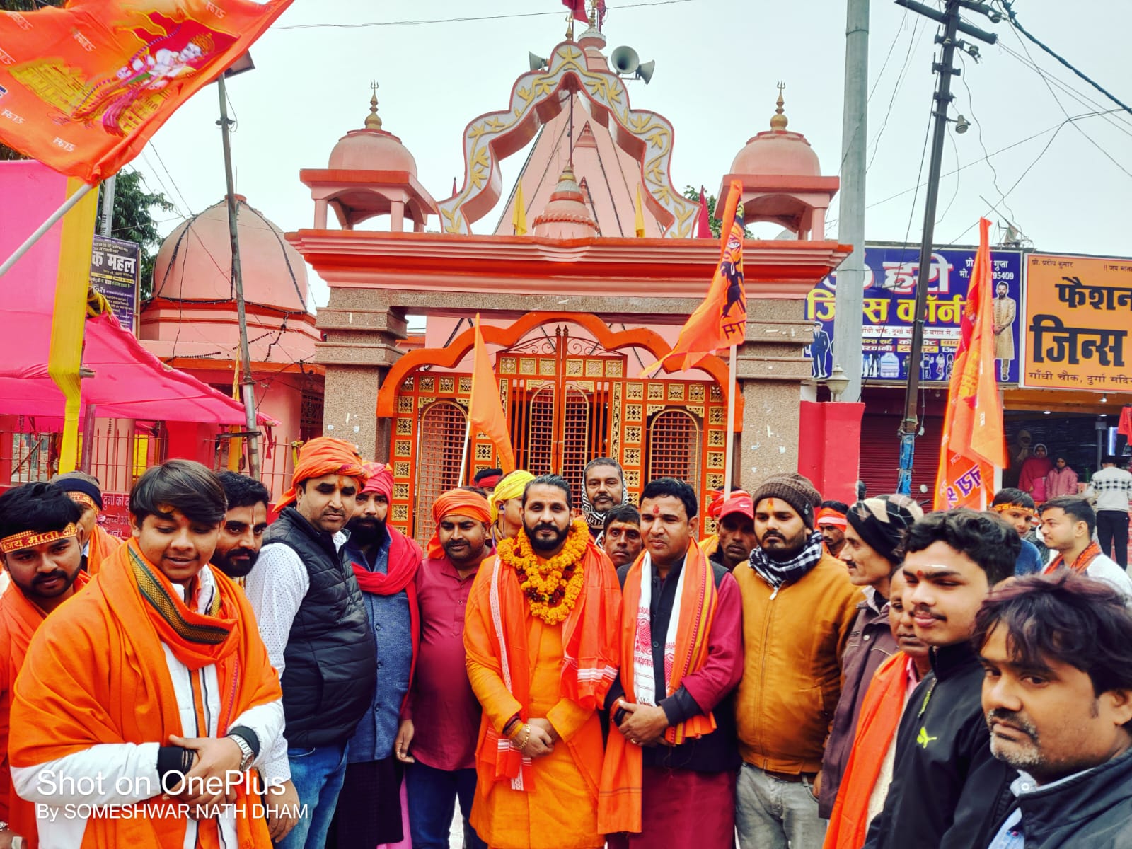 नेपाल से अयोध्या जा रहे जल कलश का स्वागत करते हुए